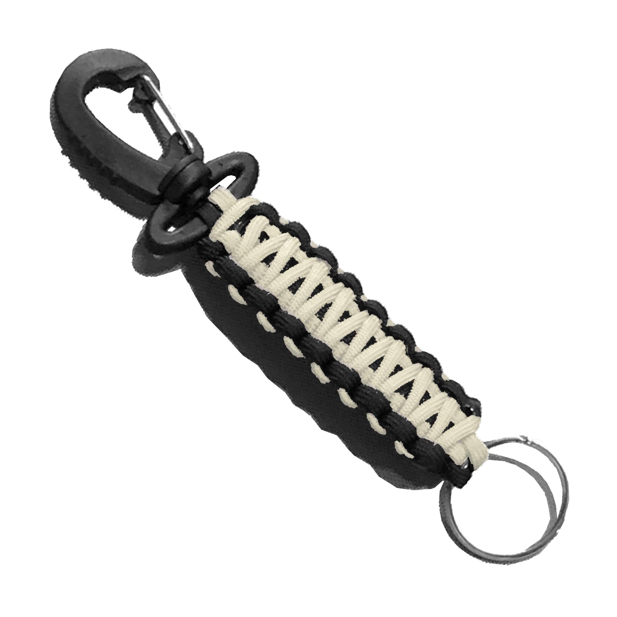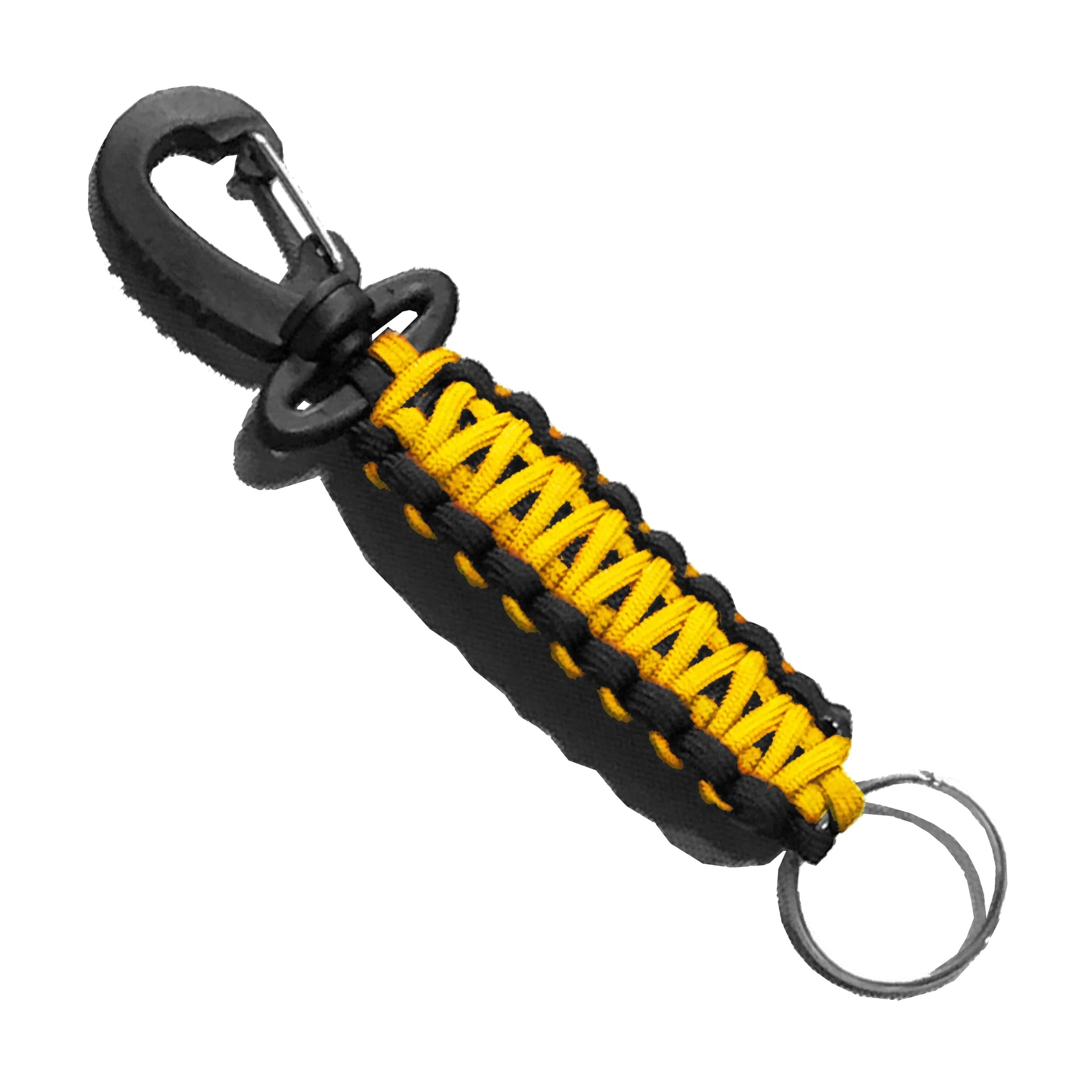 Made by hand in the USA using USA Made 550 Paracord. These have a high grade swivel buckle on one end, and a strong 1.5" keyring on the other end.